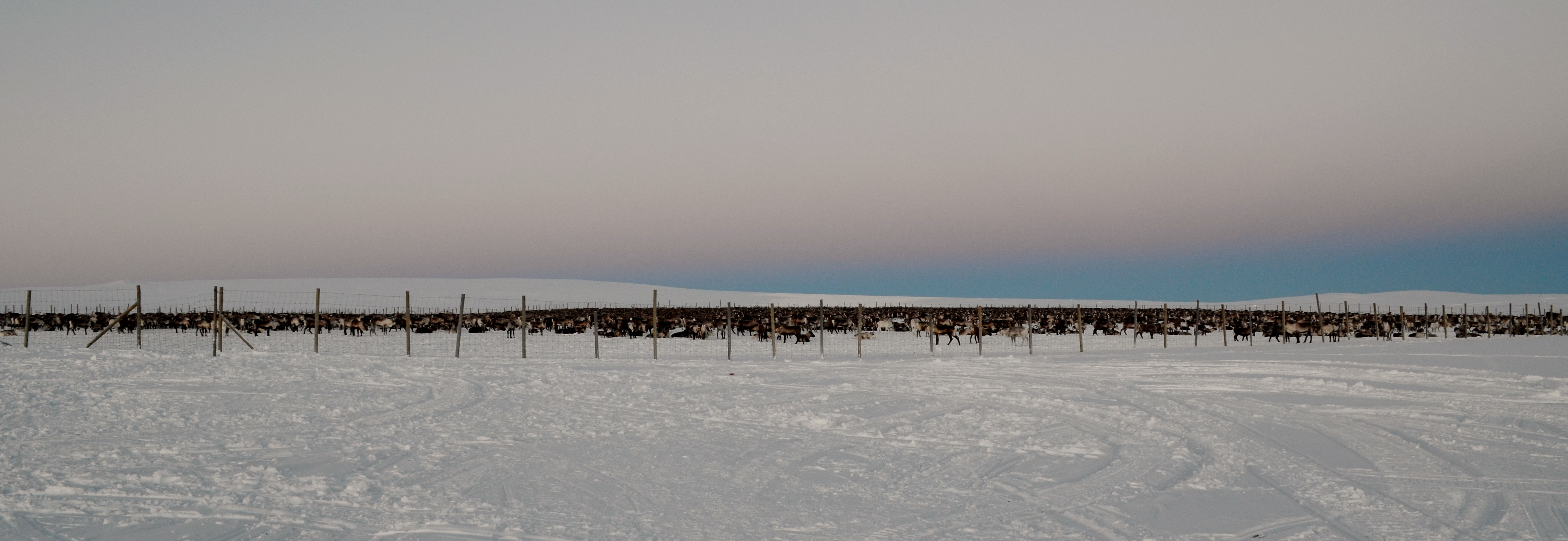 I had told Olof Thomas (OT) my boss and reindeer herder that Amanda, the anthropologist, and I, the ever curious food/farming enthusiast, would love to accompany him on any reindeer related expeditions he might have. Sure enough one week after meeting him he was calling to ask if we wanted to see a big fall separation of reindeer for the Sirges Sameby in the foothills of the mountains. “Bring your skis, lunch, and lots of warm clothes and just follow the stream of people on snowmobiles heading into the mountains,” OT instructed us in his fend-for-yourself fashion we’re growing familiar with.